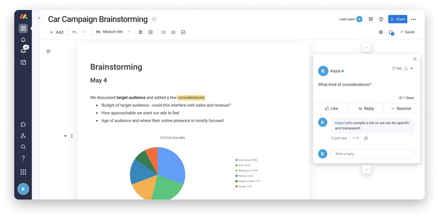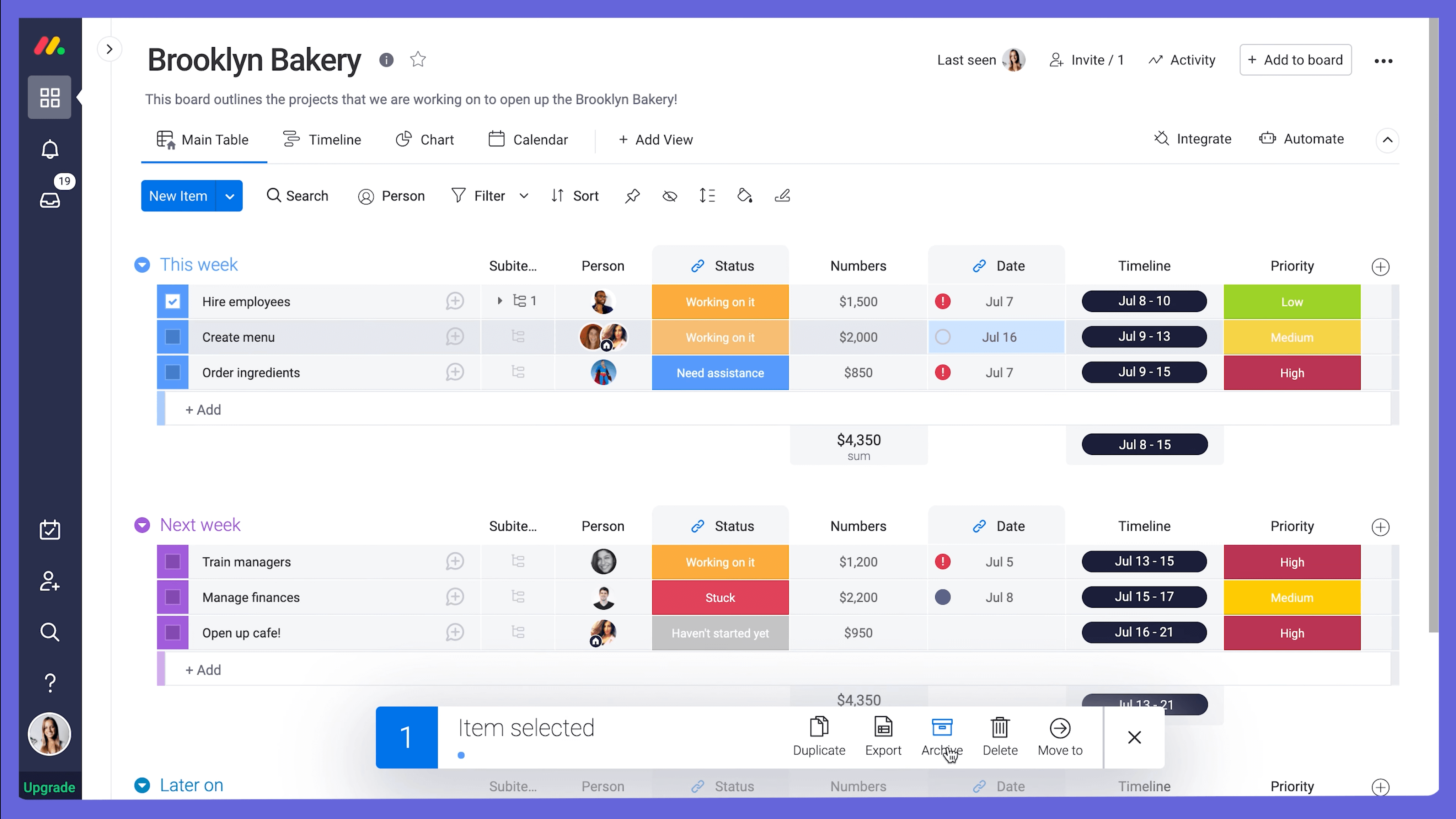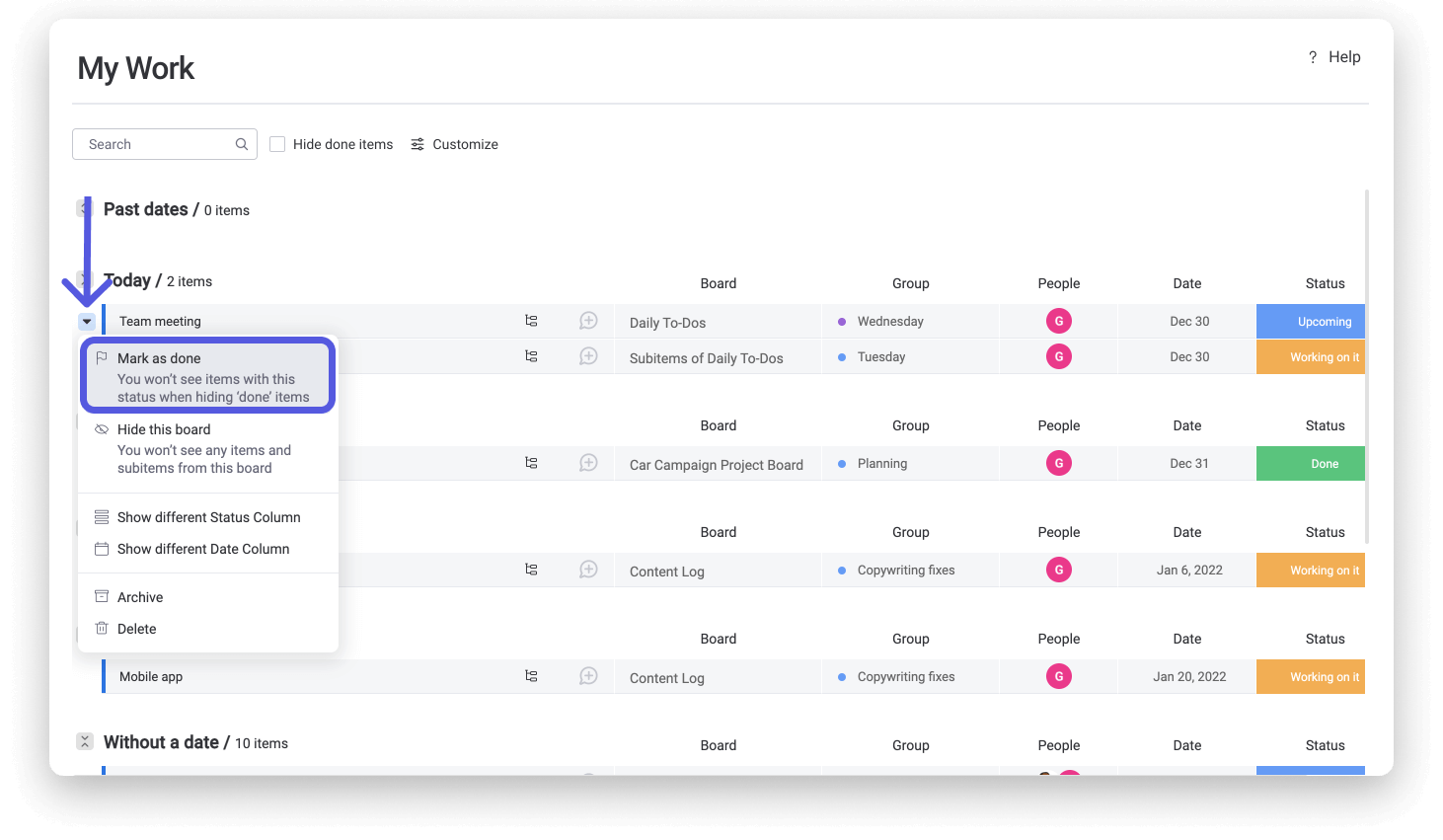Votre espace de travail sur monday.com est un outil pratique et convivial qui vous permet de gérer toutes vos tâches et celles de votre équipe. Il affiche toutes les tâches qui vous sont assignées, regroupées au même endroit, afin que vous puissiez avoir une vue d’ensemble de tout ce qui doit être fait. Grâce à … En savoir plus